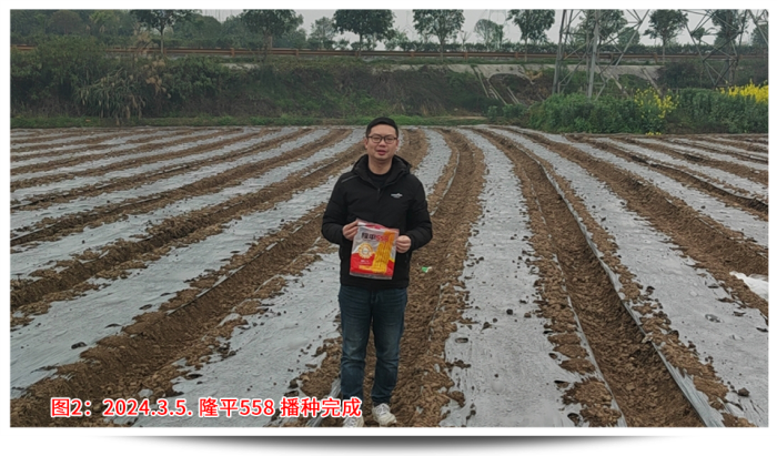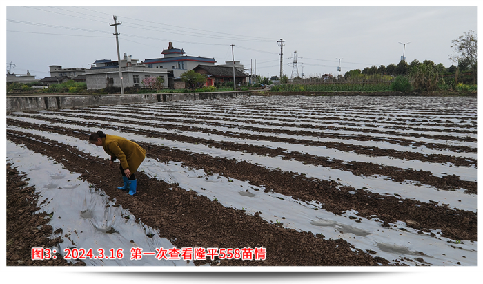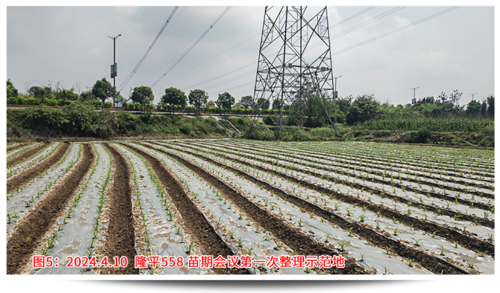 回想年前說(shuō)要召開(kāi)苗期會(huì)議的時(shí)候,大家都有點(diǎn)不知所措,因?yàn)闆](méi)有先例,客戶(hù)也并不看好苗期會(huì)議呈現(xiàn)的效果。決定了要做,那就全力以赴,第一個(gè)問(wèn)題就是示范田的選點(diǎn),要考慮播種時(shí)間、地塊條件、地塊面積、交通便捷、人員配合等,權(quán)衡各要素最終確定在樂(lè)山夾江找地。樂(lè)山夾江水源條件好有東風(fēng)堰灌溉,土質(zhì)肥沃常年種植蔬菜、藥材,地勢(shì)平坦面積規(guī)整更易找到幾畝連片地塊,播種時(shí)間較早能夠保證4月中旬苗子適合觀摩,種植戶(hù)經(jīng)驗(yàn)豐富懂得控制密度和水肥管理。從年前初選溝通,到最后落實(shí),由于交通、前茬、面積等因素,前后也溝通了6位種植戶(hù)、經(jīng)歷了3次換地,才最終在2月20日確定了地塊,并于3月5日完成播種。設(shè)計(jì)之初首先考慮的就是密度,該地塊密度有2種設(shè)計(jì),一是寬窄行(雙株)的3200株/畝,二是等行距(單株)2600株/畝,同時(shí)保證外觀性狀和產(chǎn)量性狀都有較高的體現(xiàn)。其次是保證整田無(wú)雜草,苗齊苗壯,從播種短短一個(gè)月時(shí)間內(nèi)我去查看了4次。播種時(shí)已做好了地塊除草,確定好行距、株距,然后每窩3粒播種;第一次查看,及時(shí)整理薄膜的遮蓋,了解墑情、苗情,如出現(xiàn)整箱出苗不好,及時(shí)灌溉保苗;出苗整齊后,及時(shí)補(bǔ)苗肥,促進(jìn)長(zhǎng)勢(shì);苗期會(huì)議前,插牌、美化地塊,間苗,祛除弱苗,展現(xiàn)示范地的最佳狀態(tài)。田間管理實(shí)操工作繁重且枯燥,但當(dāng)看見(jiàn)客戶(hù)在地里笑著拍攝隆平558的情景,就讓我依舊相信每一份努力的背后,一定會(huì)有驚喜!